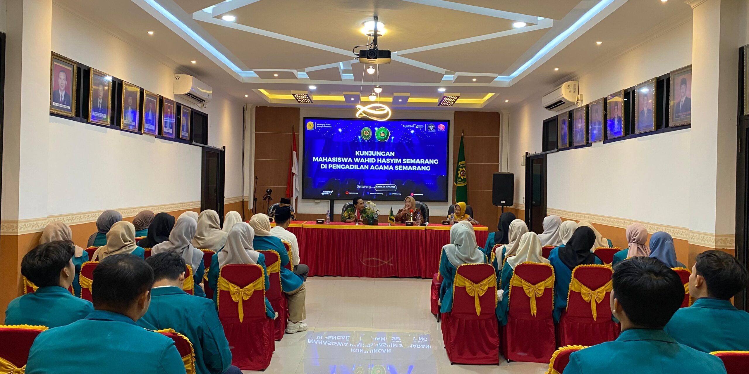 Semarang, 26 Juni 2025 – Program Studi Hukum Ekonomi Syari’ah (HES) Fakultas Agama Islam Universitas Wahid Hasyim (Unwahas) mengadakan kunjungan akademik ke Pengadilan Agama (PA) Semarang. Kegiatan ini bertujuan untuk mendalami mata kuliah Hukum Acara Peradilan Agama bagi mahasiswa semester genap Tahun Akademik 2024/2025. Sebanyak 45 mahasiswa Prodi HES Unwahas diterima dengan hangat di aula PA Semarang, yang terletak di Jalan Jenderal Urip Sumoharjo No.5 Karanganyar, Ngaliyan, Kec. Tugu, Kota Semarang.