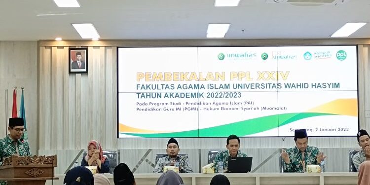 Semarang, Beberapa waktu lalu Mahasiswa Fakultas Agama Islam (FAI) Universitas Wahid Hasyim, Semarang mengikuti pembekalan Praktik Pengalaman Lapangan (PPL) XXIV. Tahun ini pembekalan PPL dilaksanakan secara hybrid, diikuti oleh 310 mahasiswa dari Program Studi Pendidikan Agama Islam (PAI), Pendidikan Guru MI (PGMI), dan Hukum Ekonomi Syari’ah (HES) yang tersebar di 33 lembaga mitra. (02/01/2023).
